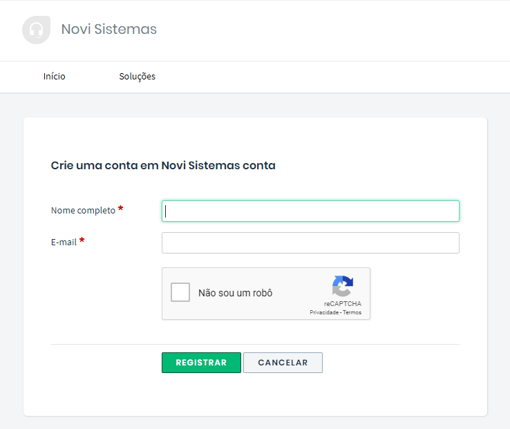 Ao clicar em Cadastre-se conosco o sistema irá abrir a seguinte tela:
